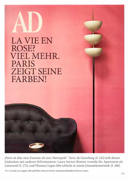 Lampadaire d'Angelo Lelii 1950 et canapé amériain 1940